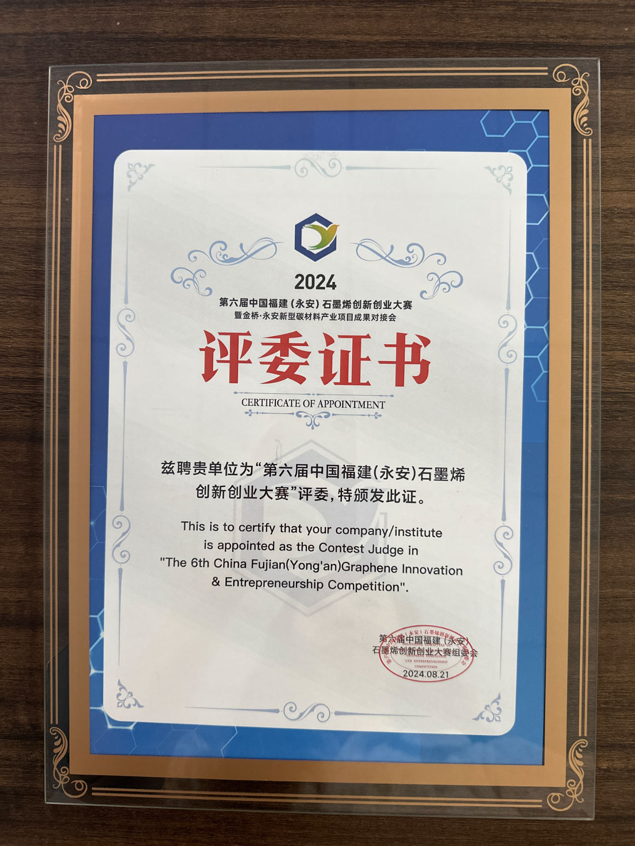 《助力创新,引领未来》——上海公海彩船6600机械设备有限公司担任第六届中国福建永安石墨烯创新创业大赛评委